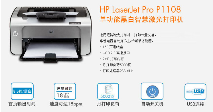 惠普(HP) 1108黑白激光打印机 A4打印 小型商用打印